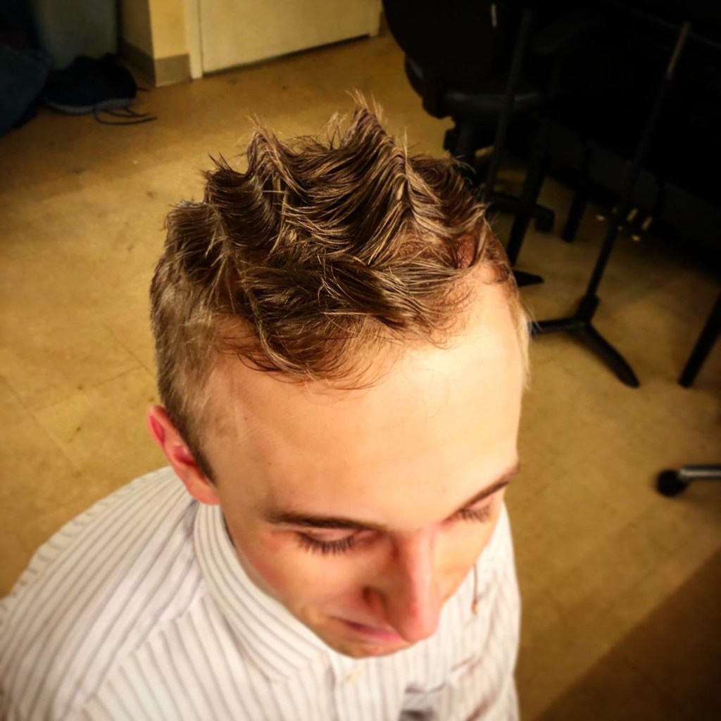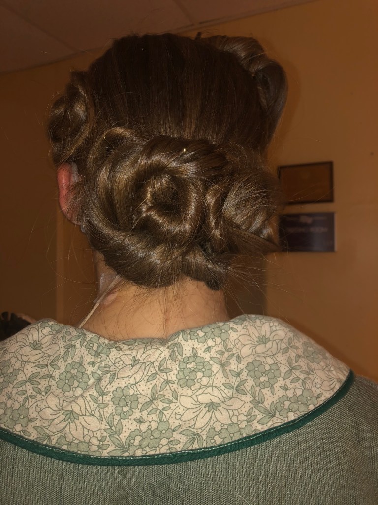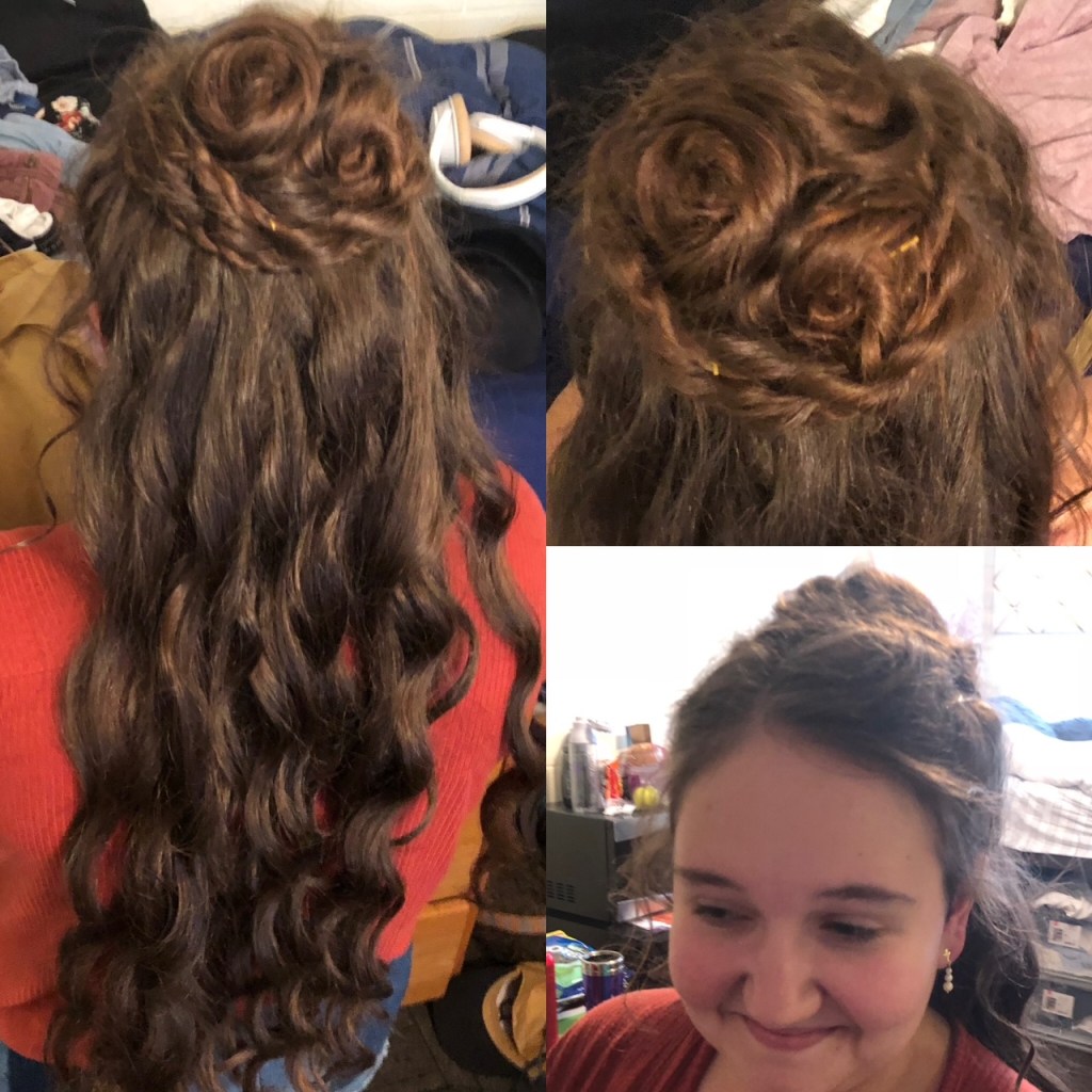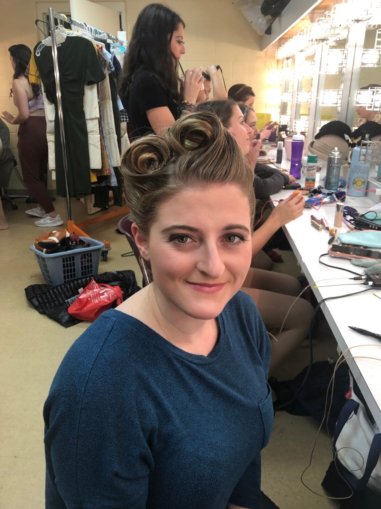 Although there was no official hair designer for this production, I helped my fellow castmates in the green room