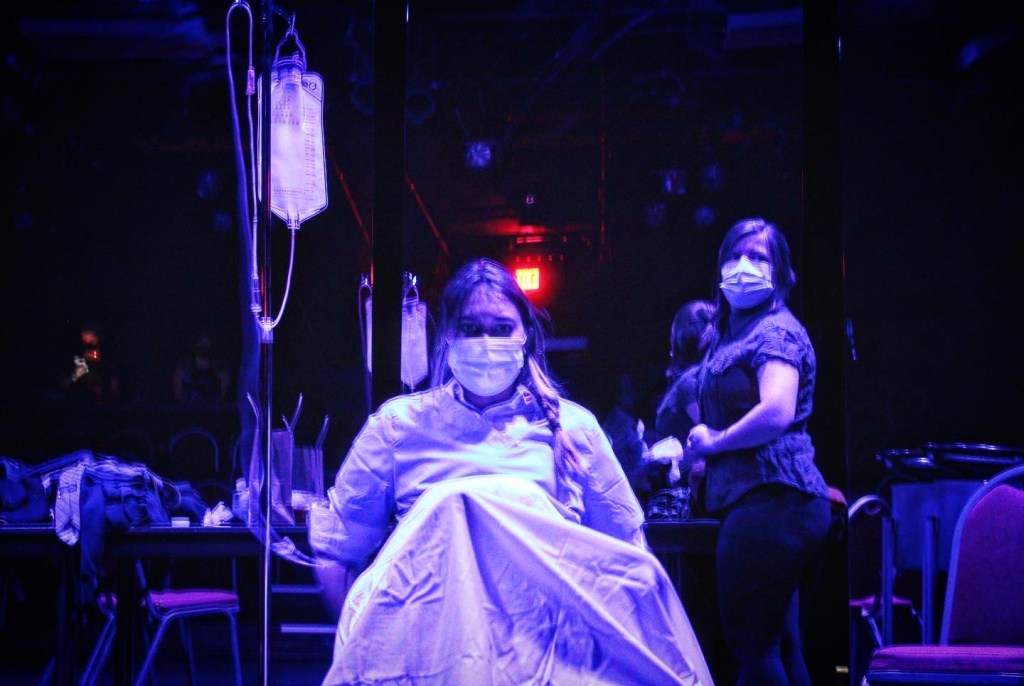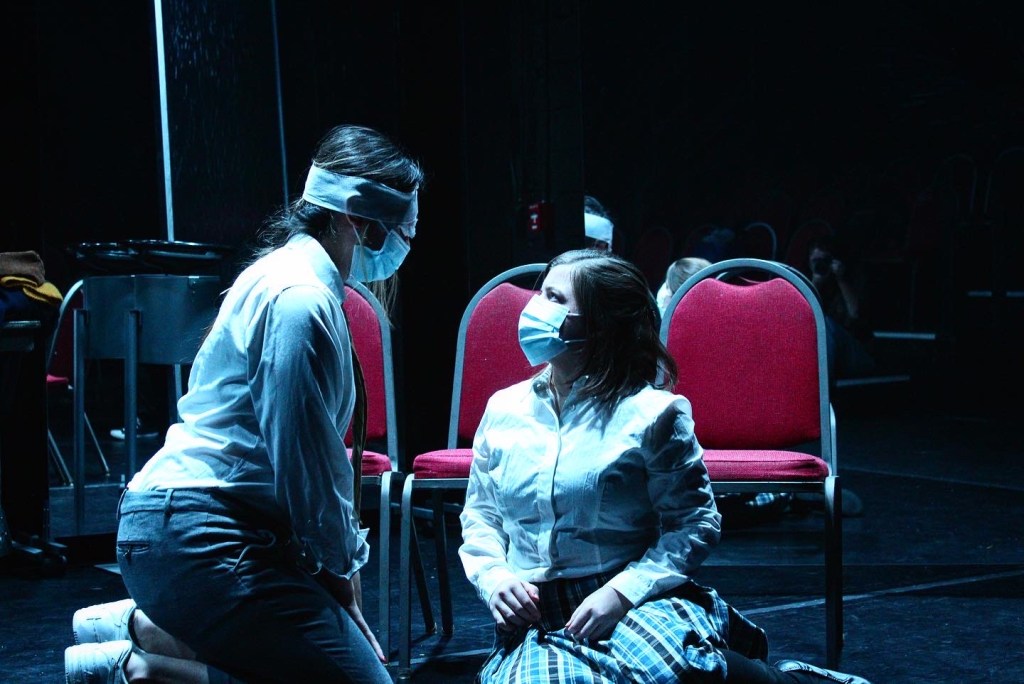 You may notice that in this production of Gruesome Playground Injuries, the male role of Dougie was portrayed by female actress Shreya Rana. This choice was intentional. He is unsure of who he is, but knows that he wants to be loved while he figures it out. Dougie has a lot to prove, and although his home life seems “better” than Kayleen’s, he is constantly in an attention deficit and feels responsible for maintaining Kayleen’s happiness. This is no small task, as Kayleen has been repeatedly abandoned and cast aside because of who she is. She is unsure if she is capable of being loved, but wants to be herself while she figures it out. Kayleen and Dougie share a special bond because–inexplicably–they can see each other’s hidden fears and desires. The set design, inspired by the large dance mirrors in this space, lends audience members the pair’s almost supernatural ability to catch glimpses of facial expressions even behind turned backs. Their bond is worth examining from every angle. With 7 billion people only a swipe away, it is increasingly easy to run at the first sign of conflict. Why give someone a second chance when you could give another person a go? Why tell someone a hard truth when you could just cut them out? It’s become radical to extend grace and forgiveness to each other. Our closest relationships are with those who have seen our flaws and count them as part of someone they love–our greater whole.